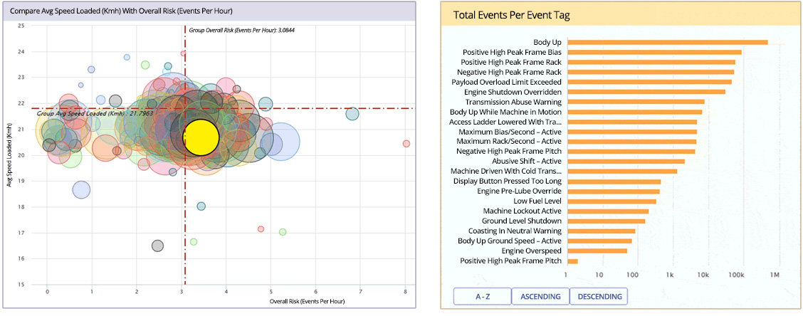 OPA data can also be filtered specific to machine errors, performance on different machines, performance over time and training history to locate the root cause of a performance trend. An initial dataset was analysed using 6 months of machine operational data from the field and simulator data. This was used to identify outlier operators in terms of risk rating or performance against key metrics (such as spot time, average speed loaded and average tons per km/hr).