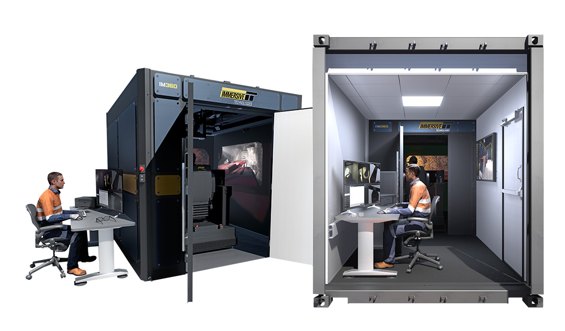 The IM360 features a high definition 360° display in an enclosed training area which limits unwanted light and sound, enabling a highly immersive and realistic training experience. This setup uniquely reflects the enclosed feel operators experience when working in an equipment cabin underground.